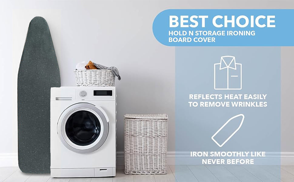 Introducing the Hold N' Storage Ironing Board Cover and Pad, a superior solution for efficient and effective ironing. Measuring 15" x 54", this cover is designed to fit most standard-sized ironing boards, providing a universal fit that’s easy to install. The cover features a premium thick padding material that ensures durability and comfort, wrapped generously around your ironing board to make your ironing experience smoother and more enjoyable. Coated with silicone, the cover significantly reduces ironing time by reflecting heat back to the fabric, helping you achieve perfectly pressed clothes in less time.