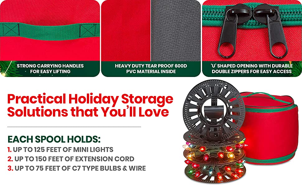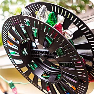 - Each spool stores up to: 150 feet of wire, 125 feet of mini lights, 150 feet of extension cords or 75 feet C7 type lights
