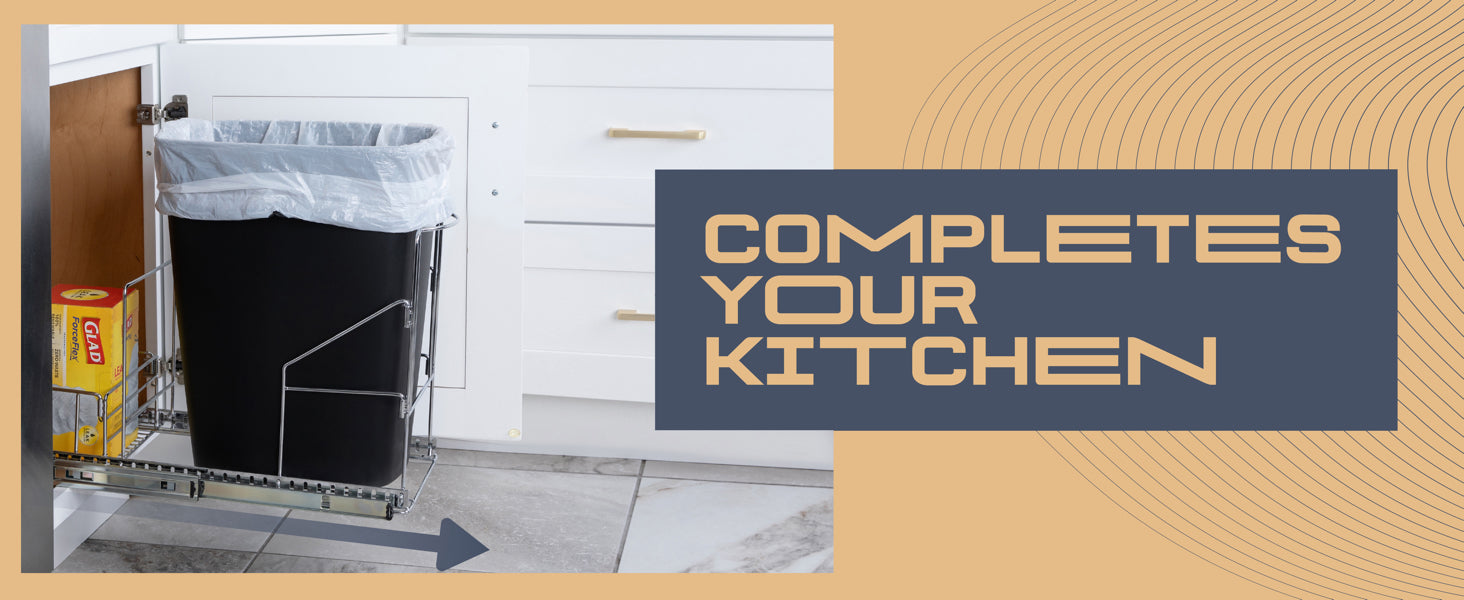 The Cabinet Trash Can Pull Out Kit is compatible with either hinged or pull-out doors, making it ideal for new or old cabinets.