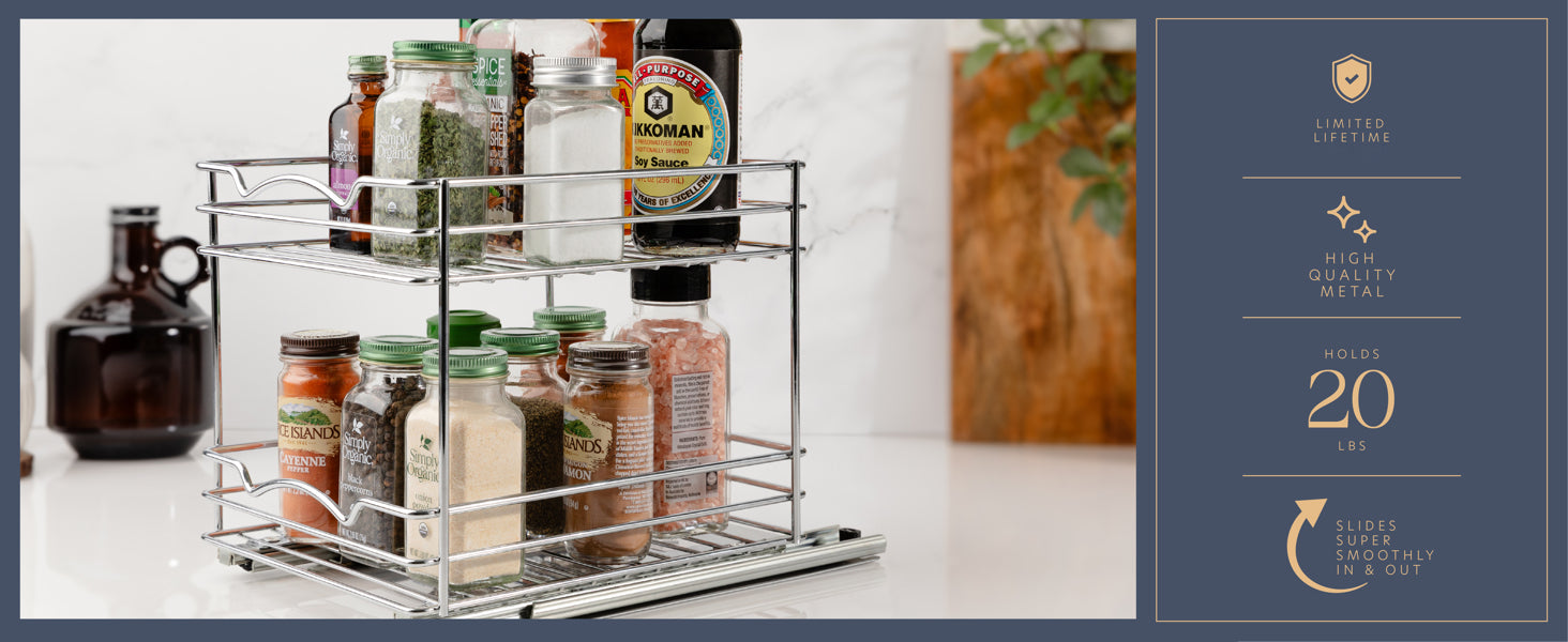 This pull-out spice rack comes with a lifetime warranty, ensuring its longevity and reliability. It helps reduce cabinet clutter and makes it easier to locate and retrieve spices and other items. The combination of its sturdy construction and user-friendly design makes it a valuable addition to any kitchen, enhancing both functionality and convenience.