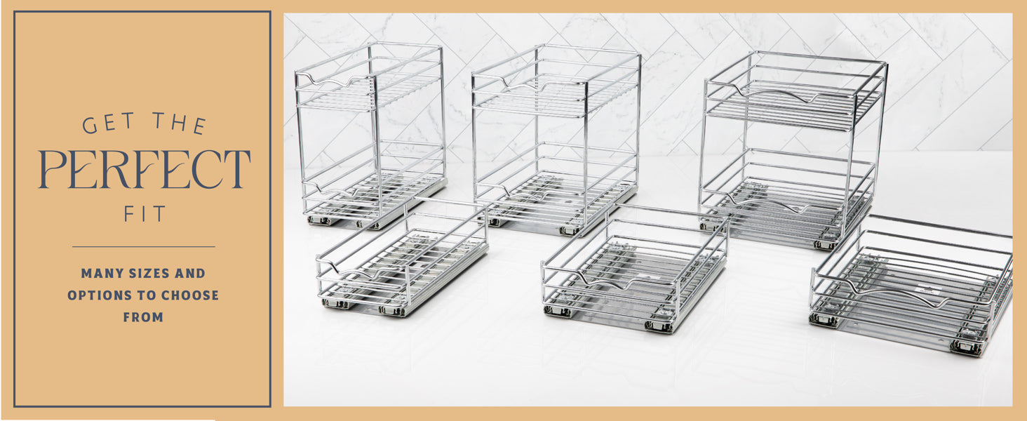 The Hold N' Storage 2 Tier Pull Out Cabinet Organizer is a robust spice rack designed for efficient kitchen organization. Constructed from heavy-duty chrome metal, it provides both durability and style. Its compact size of 4.5" W x 10.375" D x 8.875" H is ideal for larger spice containers and ensures easy access to your spices with a smooth sliding mechanism. Installation is hassle-free with a requirement of only a 4.9" cabinet opening.